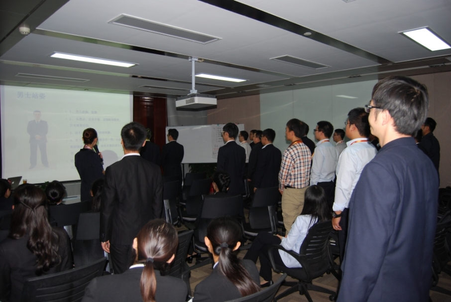 通過女士和男士日常行為的示范,讓同事們知道了符合職場禮儀的站姿、坐姿、行走、下蹲等標(biāo)準(zhǔn),讓大家印象深刻。