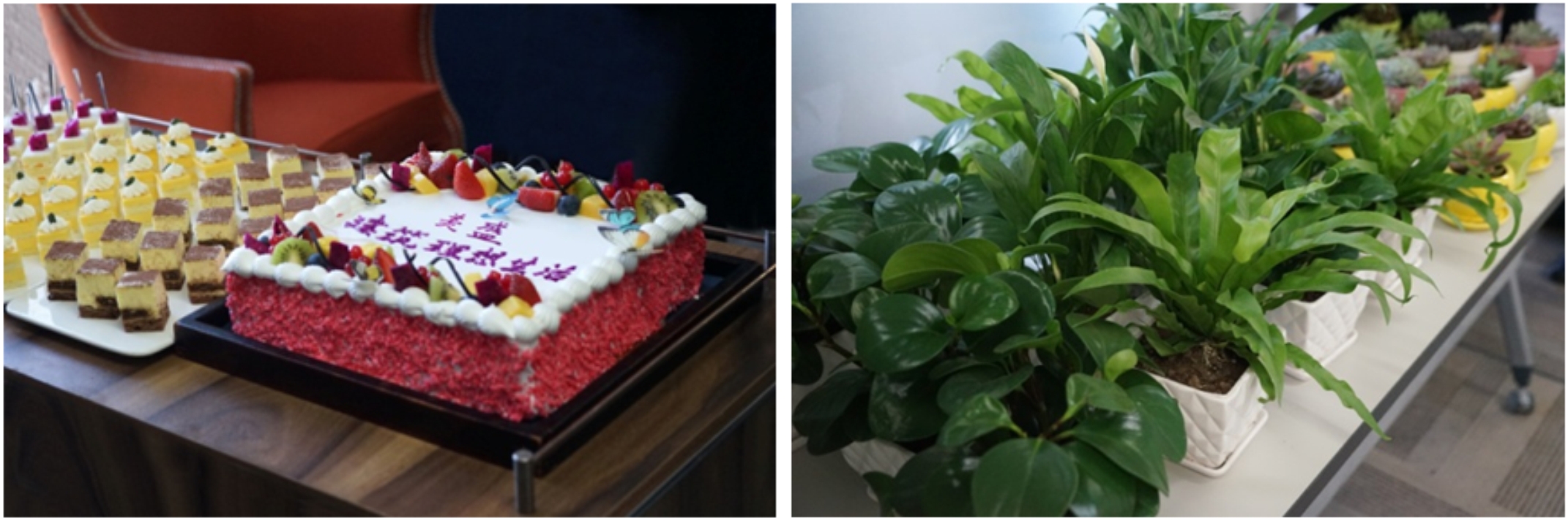 喬遷儀式的現場,行政管理中心的同事還精心準備了節目和可口的蛋糕甜品,并為每位同事贈送了一盆桌擺綠植。祝愿兩個部門在新的辦公環境中順心順意,共創佳績。