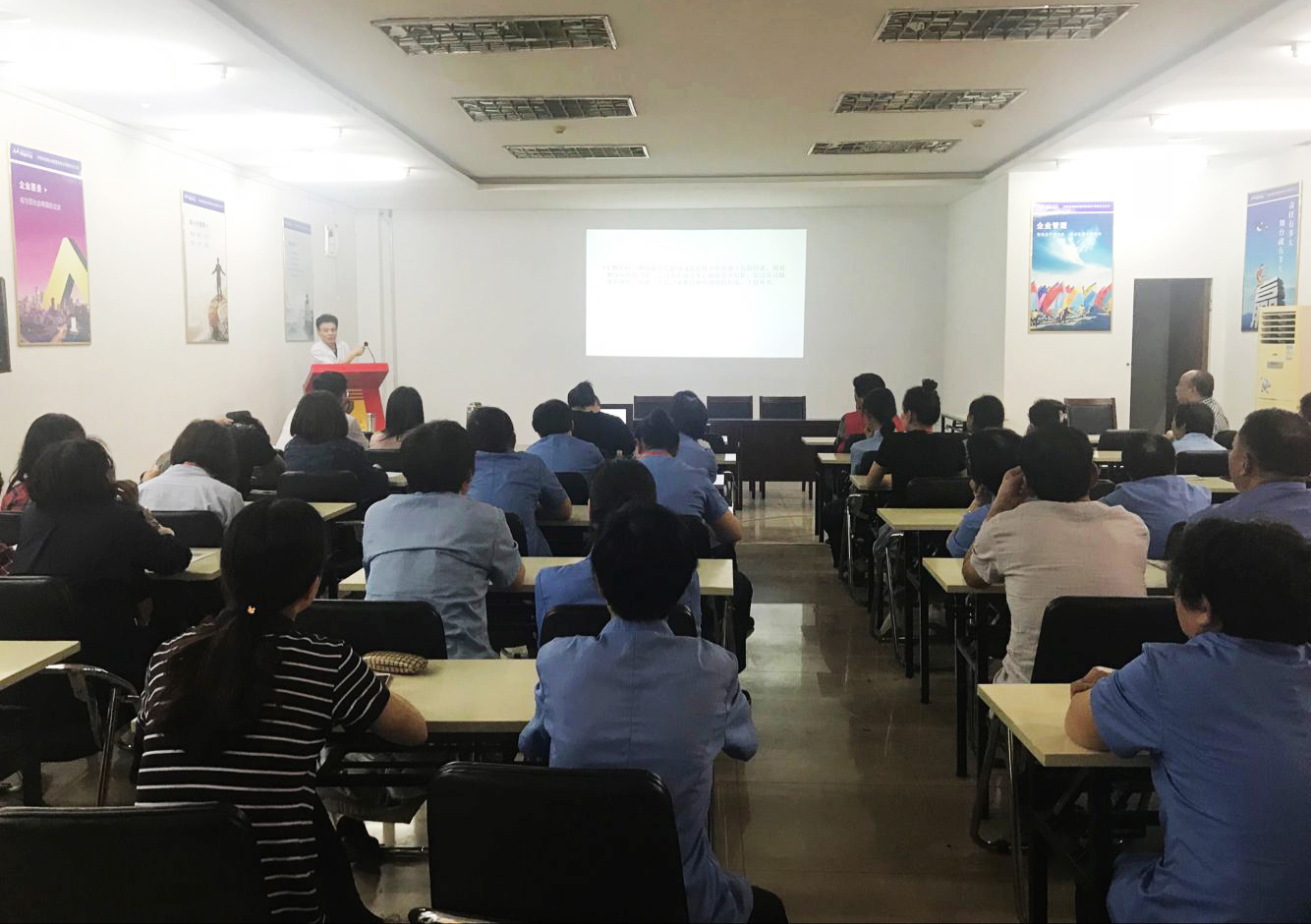 關(guān)愛物業(yè)服務(wù)人員,預防老齡化常見病多發(fā),為降低物業(yè)服務(wù)人員常見疾病風險,普及常見病預防知識,進一步加強員工健康教育知識及疾病防控意識,引導員工建立健康的生活方式和理念,強化康體保健意識,切實提高員工對心腦血管疾病的自我預防能力,讓員工能健康生活、快樂工作, 5月24日下午,漯河新天地特邀內(nèi)科專家范小明在辦公樓三樓大會議室舉辦了一次以“心腦血管疾病健康保健知識”為主題的講座,公司各部門員工積極參與,認真聆聽了此次講座。
