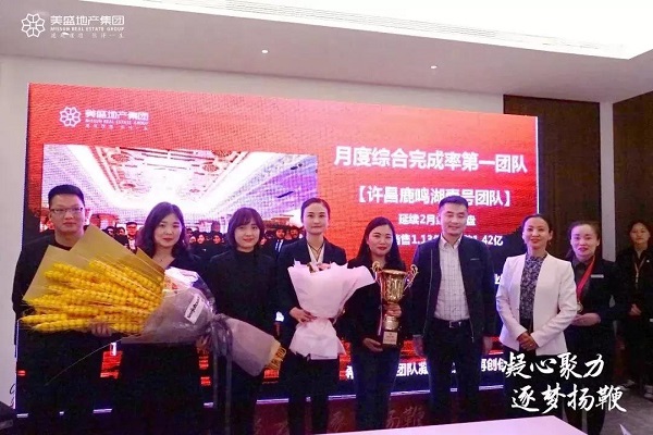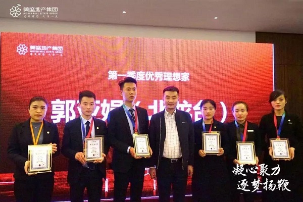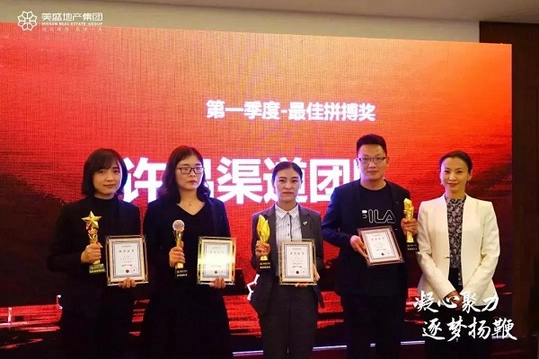 在頒獎環節中,美盛地產集團總裁劉聰笑先生為優秀團隊及優秀營銷人員頒獎,許昌團隊榮獲銷管、策劃、拼搏最佳獎,美盛·象湖100獲得最佳案場獎。銷冠當道,誰與爭鋒,美盛·北龍臺項目銷冠——胡金燕、美盛·白河灣項目銷冠——劉德宇、美盛·象湖100項目銷冠——于夢曉、許昌南區項目銷冠——盧旭童、許昌項目——韋恒竺再創佳績榮膺冠軍。