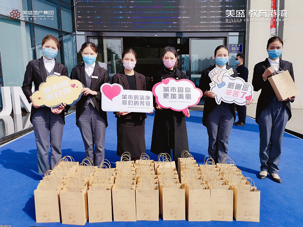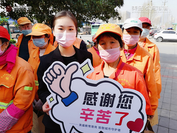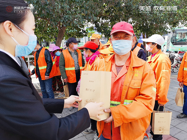 心懷感恩之情,3月20日,美盛教育港灣團(tuán)隊(duì)走到街頭一線,慰問那些堅(jiān)守崗位一線的環(huán)衛(wèi)工作者,為守護(hù)他們的健康送上一份防疫大禮包。
