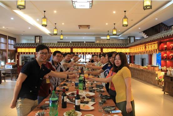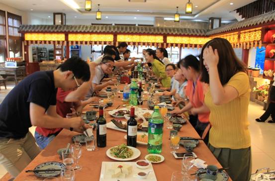 晚餐之前,為了活躍氣氛,人力資源部為大家精心準(zhǔn)備了“筷樂傳遞”的游戲,長桌對面分為兩組進行PK,用筷子把乒乓球從頭傳到尾的隊為勝,獲勝的隊有項特權(quán)可以讓失敗的隊為自己夾菜吃。一個簡單的游戲讓大家體會到團隊配合的力量,也讓整個晚餐的氛圍愉悅起來。