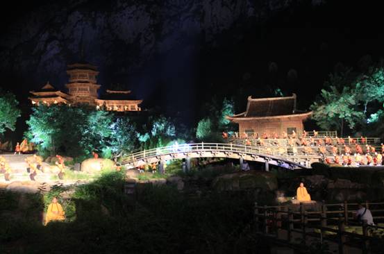 菩提本無樹,明鏡亦非臺。本來無一物,何處惹塵埃。晚餐結(jié)束后,一場絕美的視聽盛宴在等著大家,晚上8點10分禪宗少林音樂大典開演,大家一起傾聽禪樂,感受少林文化。光樂、琴音、歌聲、吟詠,將佛學(xué)禪宗文化闡釋的淋漓盡致,大家深深的被震撼并陶醉其中。