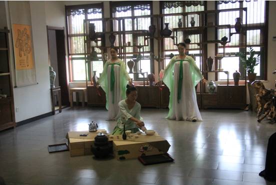 禪茶表演,由茶藝師細膩的表演了信陽毛尖、烏龍茶和鐵觀音等茶的不同特性和沖泡特點。