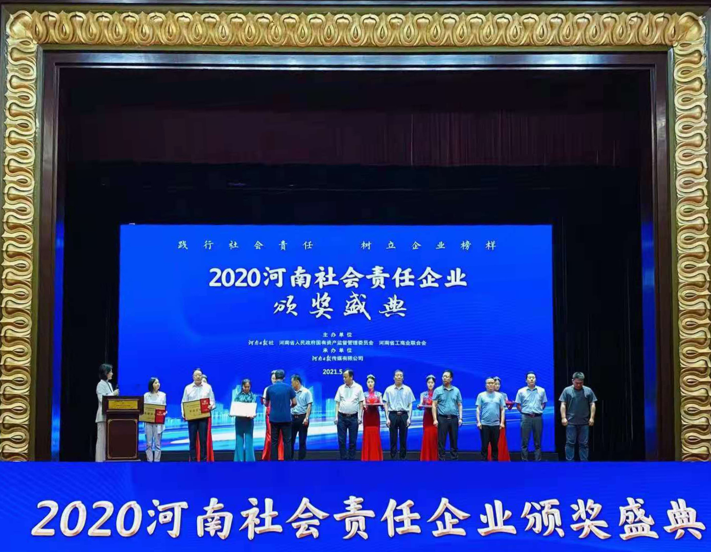2021年5月21日,由河南日報社、河南省國資委、河南省工商業(yè)聯(lián)合會聯(lián)合主辦,河南日報傳媒有限公司承辦的“2020河南社會責(zé)任企業(yè)”推選活動頒獎典禮在鄭州黃河迎賓館隆重舉行。