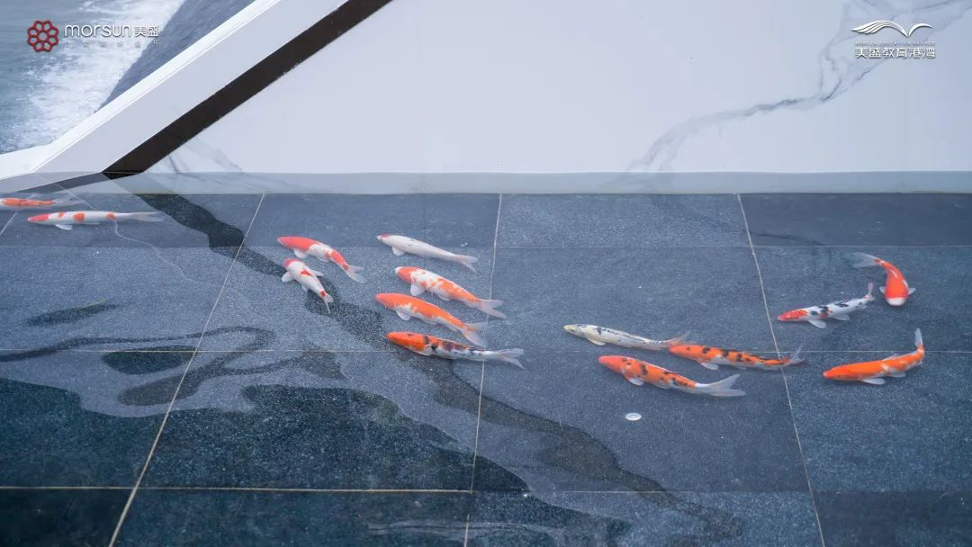 最吸引人的,莫不過園區(qū)大堂正對著超大的跌水,碧波蕩漾的漣漪里,倒映著建筑的曲線,錦鯉在水中肆意遨游,靜坐在水景邊的廊架下,可以想象未來的愜意生活。
