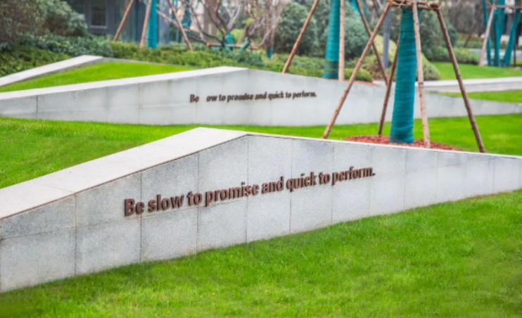 走進已交付的品質社區,藝術化景觀,再現常春藤學院風采。隨處可見的世界名校校徽校訓,潛移默化影響孩子視野;