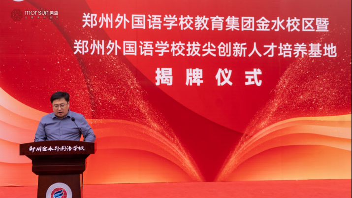 在揭牌儀式上,鄭州市金水區(qū)教育局副局長胡培林在致辭中說,近年來,在市政府、市教育局、區(qū)政府的堅強領(lǐng)導(dǎo)下,金水教育發(fā)展日新月異,取得了突破性進(jìn)展。美盛集團(tuán)勇?lián)鐣?zé)任,高規(guī)格承建鄭州金水外國語學(xué)校,自去年9月投用以來,呈現(xiàn)出高起點、高標(biāo)準(zhǔn)辦學(xué)的發(fā)展態(tài)勢,得到了廣大學(xué)生家長的一致認(rèn)可,有效提升了轄區(qū)群眾的教育獲得感、幸福感。