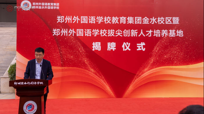 2023年4月20日上午,鄭州外國語學(xué)校教育集團(tuán)金水校區(qū)暨鄭州金水外國語學(xué)校拔尖創(chuàng)新人才培養(yǎng)基地揭牌儀式在鄭州金水外國語學(xué)校舉行。