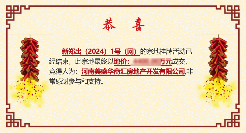 3月6日上午,美盛·中華城成功摘取新鄭出(2024)1號(網)新地塊,為美盛在南龍湖區域的開發版圖再添濃墨重彩的一筆。