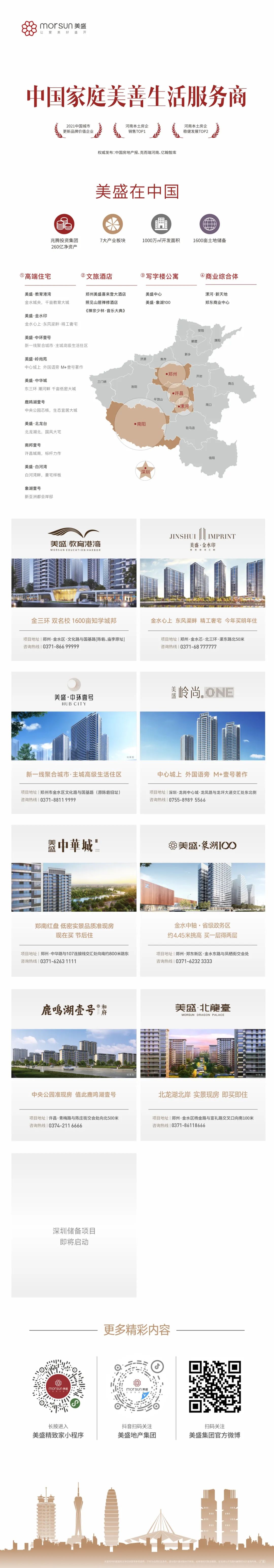 作為河南本土的龍頭企業,美盛集團始終以高品質、高標準的產品和服務贏得了市場的廣泛認可。2022-2023年實現交付約20000套,以雄厚的實力兌現了交付承諾,為業主提供了置業的堅實保障;集團連續榮膺2023年1-12月大鄭州本土房企銷售金額榜TOP1,這一榮譽不僅是對美盛的肯定,更是對品牌實力和產品品質的認可。