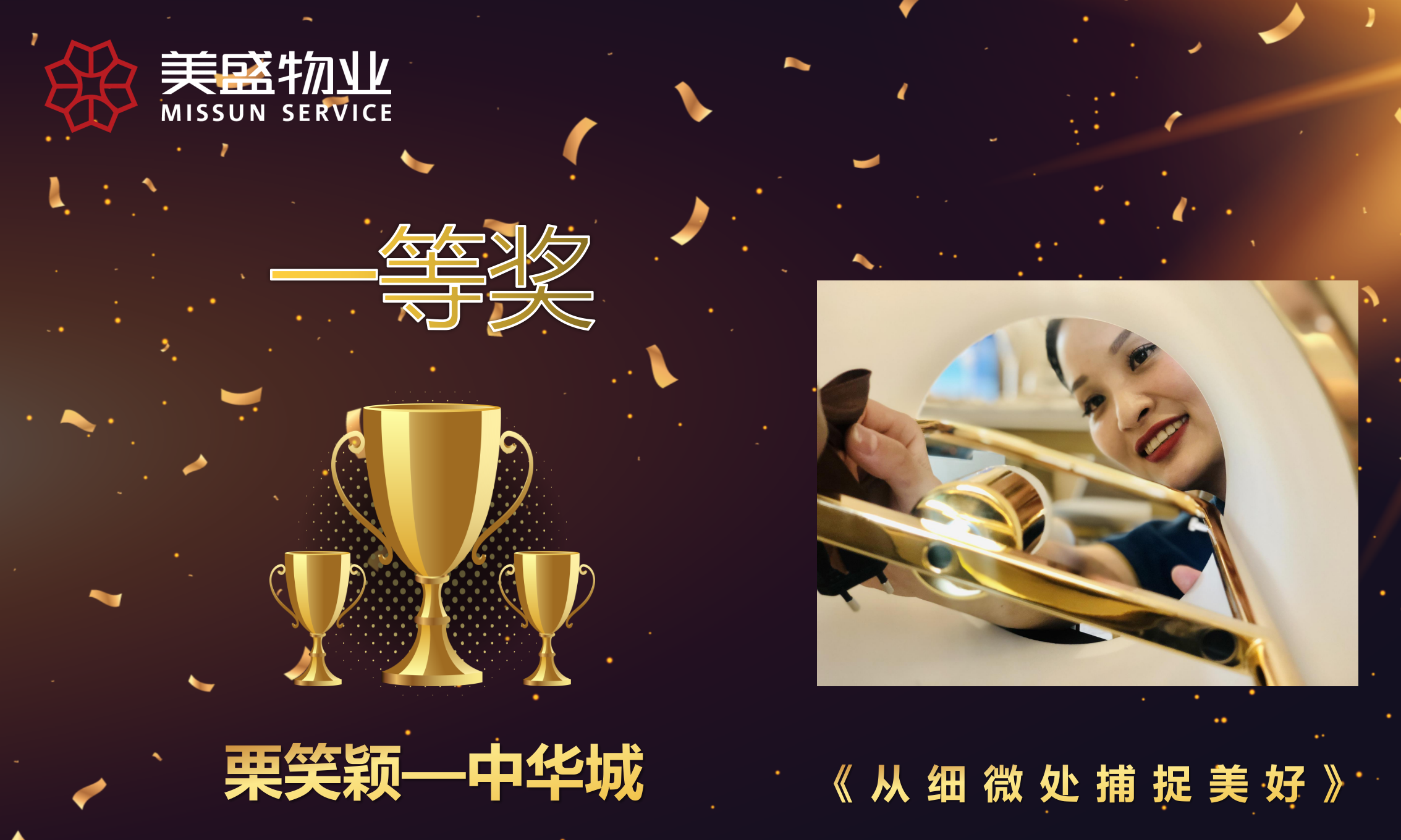 “精彩美盛,定格你的美”主題攝影比賽由美盛物業(yè)管理中心人力行政部主辦,旨在展示美盛物業(yè)員工對待事業(yè)的執(zhí)著追究求和對生活的無限熱愛,增強(qiáng)員工的責(zé)任感、使命感及主人翁精神,激發(fā)團(tuán)隊活力,傳播正能量,將日常的瞬間定格為永久的美。