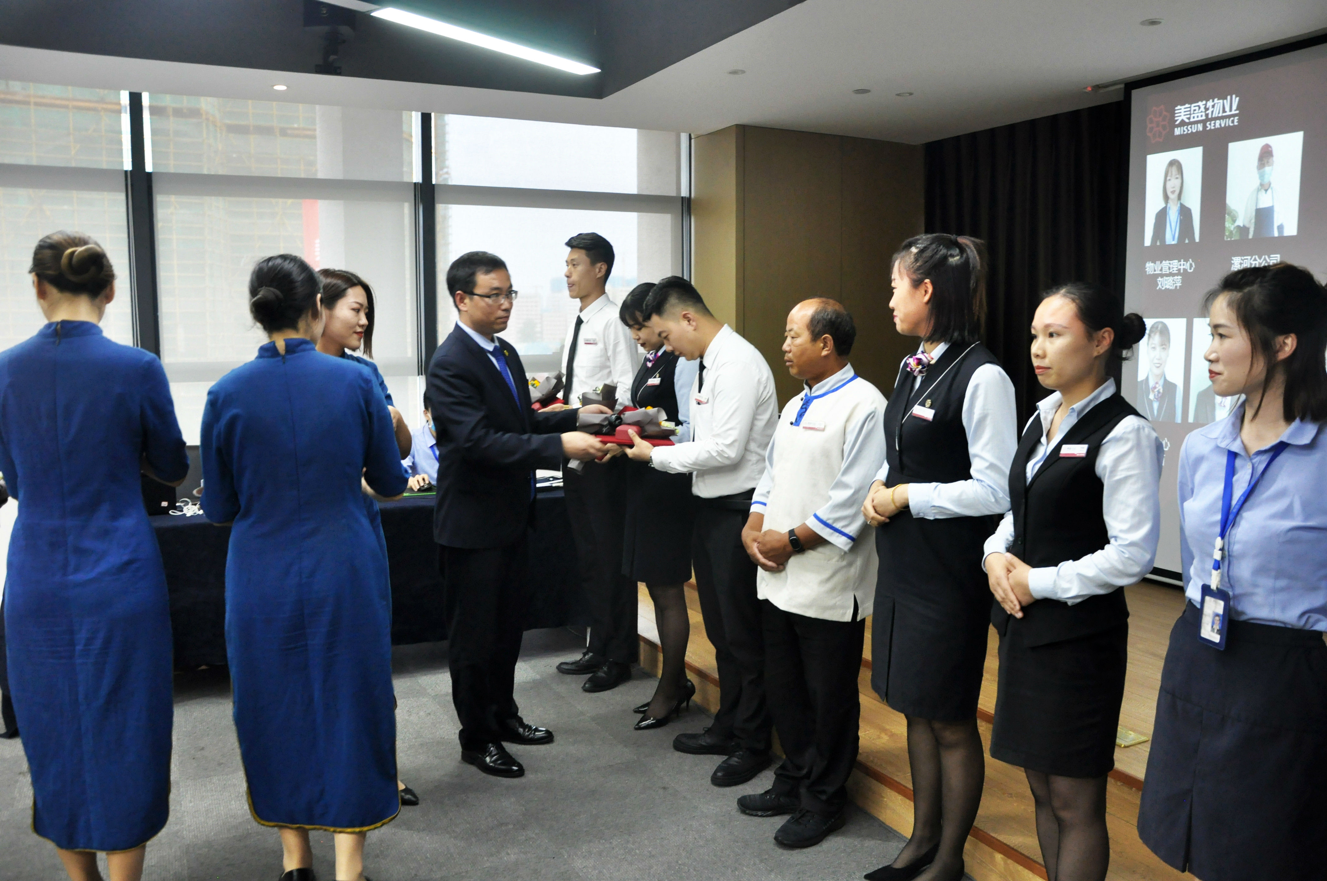 美盛物業(yè)馬總親自為上半年的美盛“物業(yè)之星”頒發(fā)證書