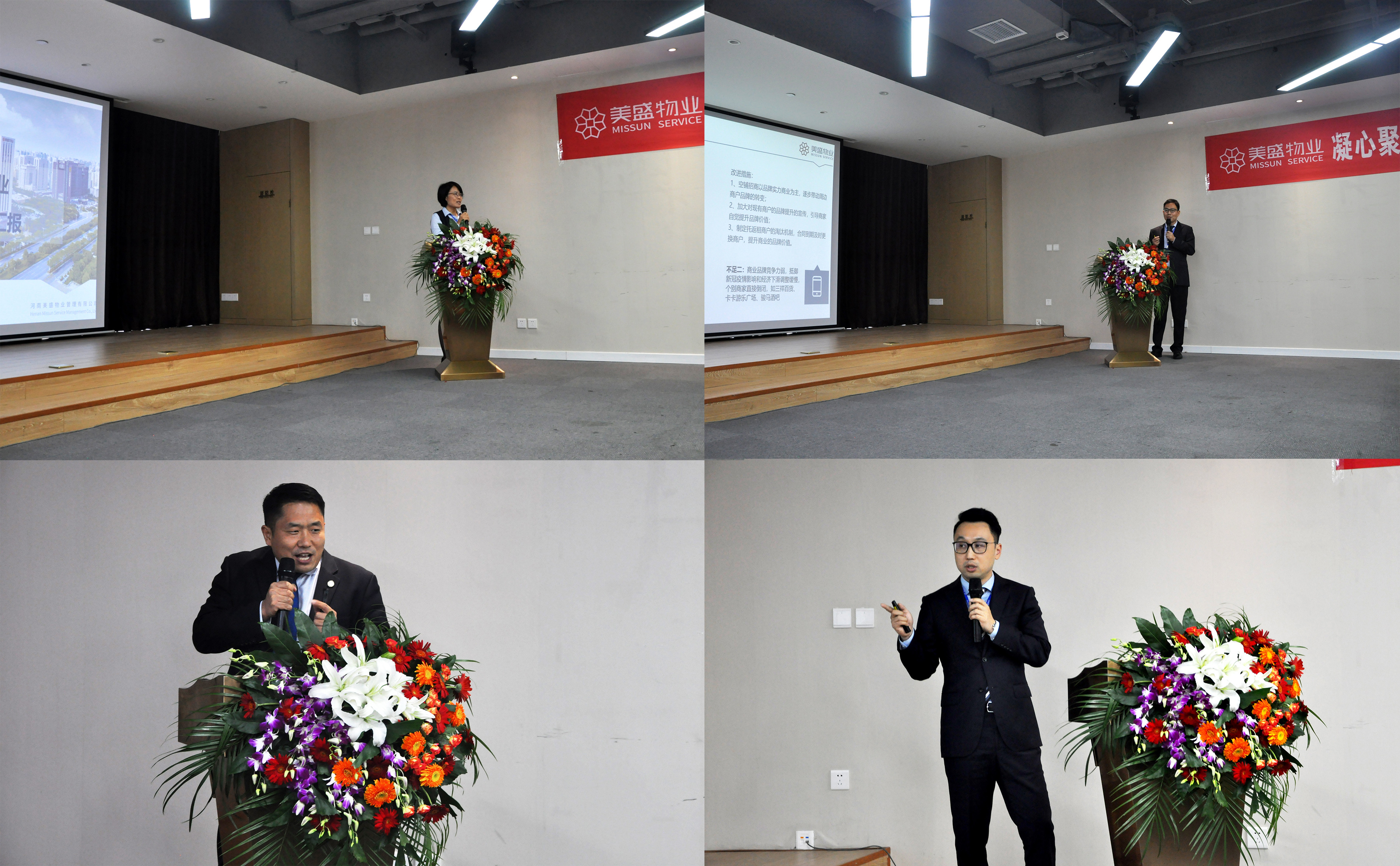 年中總結(jié)會主要議程——工作匯報,分別由鄭州分公司、漯河分公司、許昌分公司、美盛中心、南陽分公司、品牌運營部、經(jīng)營部、人力行政部、工程前介部、物業(yè)部、財務(wù)部等主要負(fù)責(zé)人,一一匯報各自2020年上半年的工作總結(jié)與下半年的工作計劃。