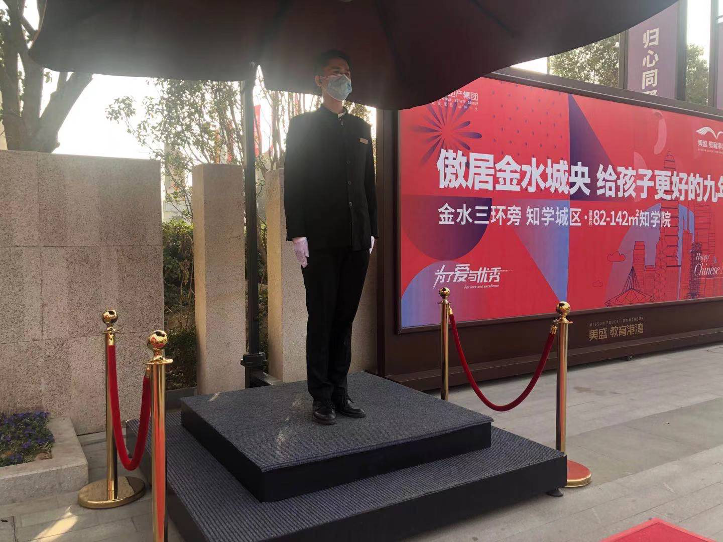 走近教育港灣營銷中心停車場,一個身穿工裝帥氣的大男孩就會出現在您的眼簾中,挺拔的軍姿,標準的敬禮再加上一句“ 您好,歡迎參觀美盛教育港灣! ”