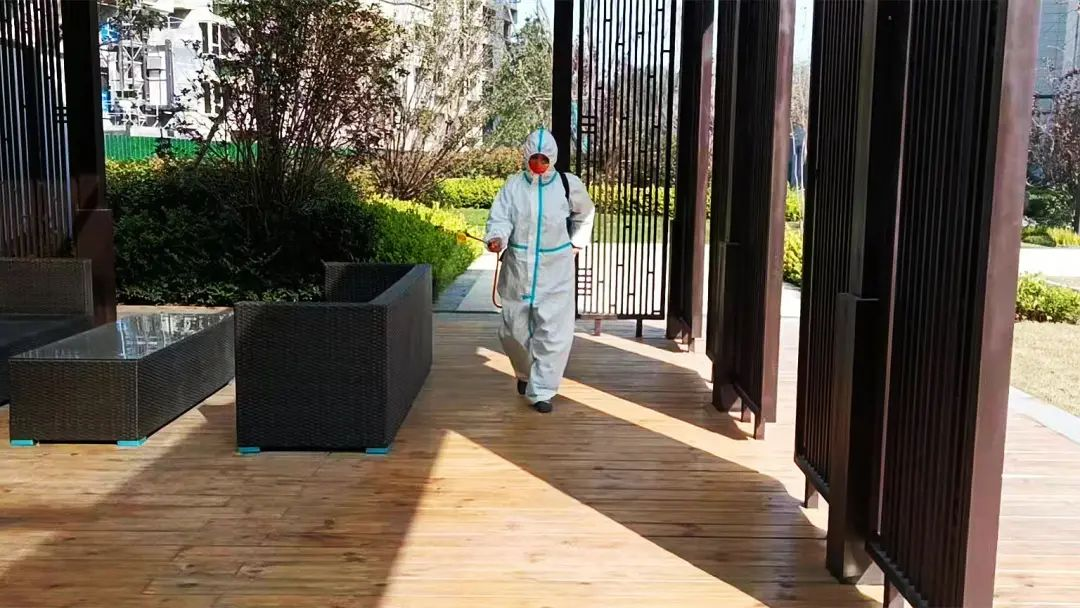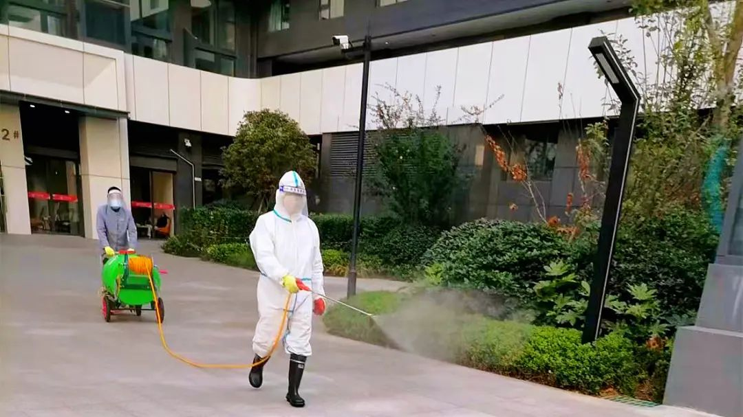 為保障園區業主的生命健康安全,各物業服務中心每日對小區出入口、主干道、單元門、樓道、電梯轎廂等公共區域進行全覆蓋式消殺。