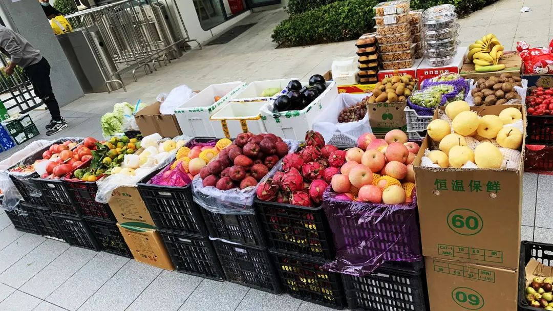 為了充分保障業主的生活物資采購需求,美盛象湖100金悅園物業快速啟動生活物資保供服務,聯動蔬菜商家進院銷售,把“農貿市場”開到了小區內,蔬菜瓜果、肉奶蛋禽等各類生鮮用品應有盡有。