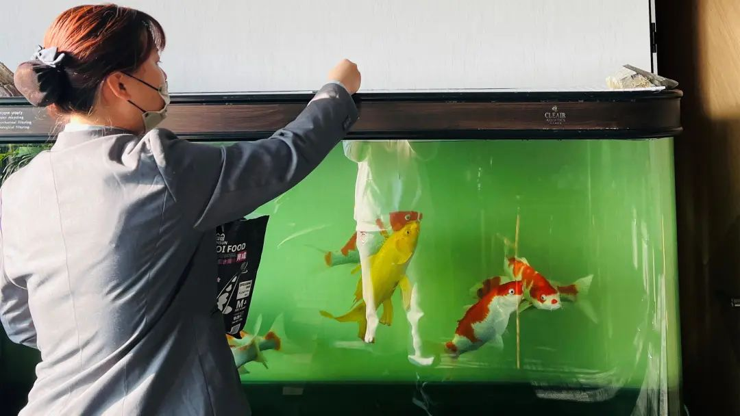 美盛中心物業人員幫業戶照顧魚寵